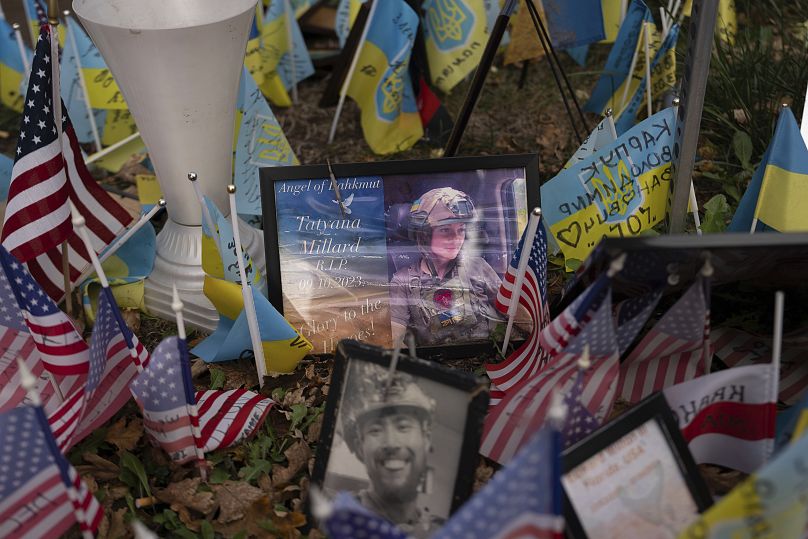 Alors que la guerre en Ukraine entre dans son 1 000e jour, une mer de drapeaux bleus et jaunes continue de croître en l’honneur des morts sur la place de l’Indépendance, dans la capitale du pays.
