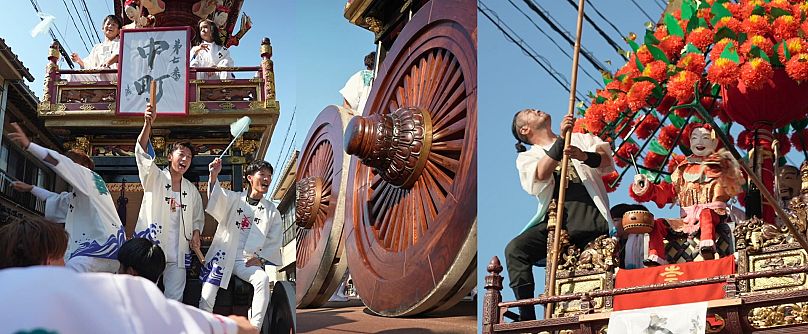 Ces chars Hikiyama constituent un patrimoine culturel précieux au Japon, des structures imposantes sculptées à la main, magnifiquement laquées et équipées d’énormes roues de chariot en bois.