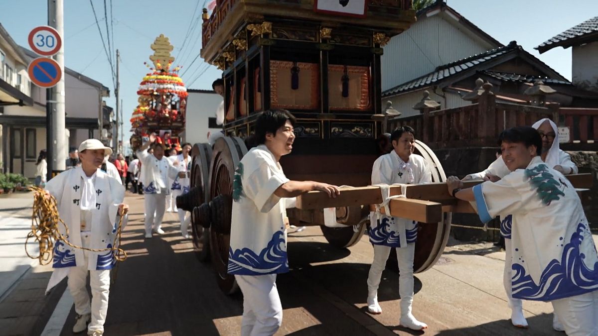 Commençant au sanctuaire shinto de la ville, le festival se déplace ensuite dans les rues – et la divinité locale se joint même au sommet d’un sanctuaire portable, qui défile devant une longue procession de 13 chars Hikiyama (représentant les 13 districts d’Imizu).