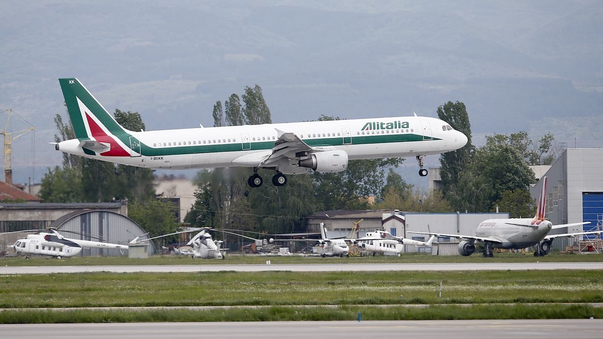 File picture of an Alitalia plane taking off from Sofia airport in Bulgaria