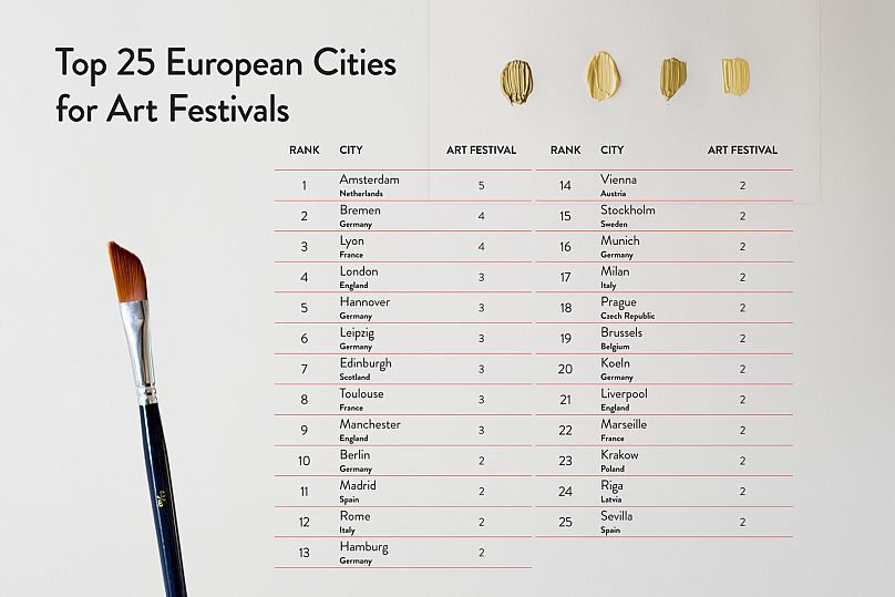 La société est l’un des principaux revendeurs en ligne d’Allemagne pour les produits photo personnalisés et ils ont facilement collecté, analysé et classé les villes les plus artistiques d’Europe, dévoilant quelles villes européennes sont des paradis pour les artistes et les amateurs d’art.