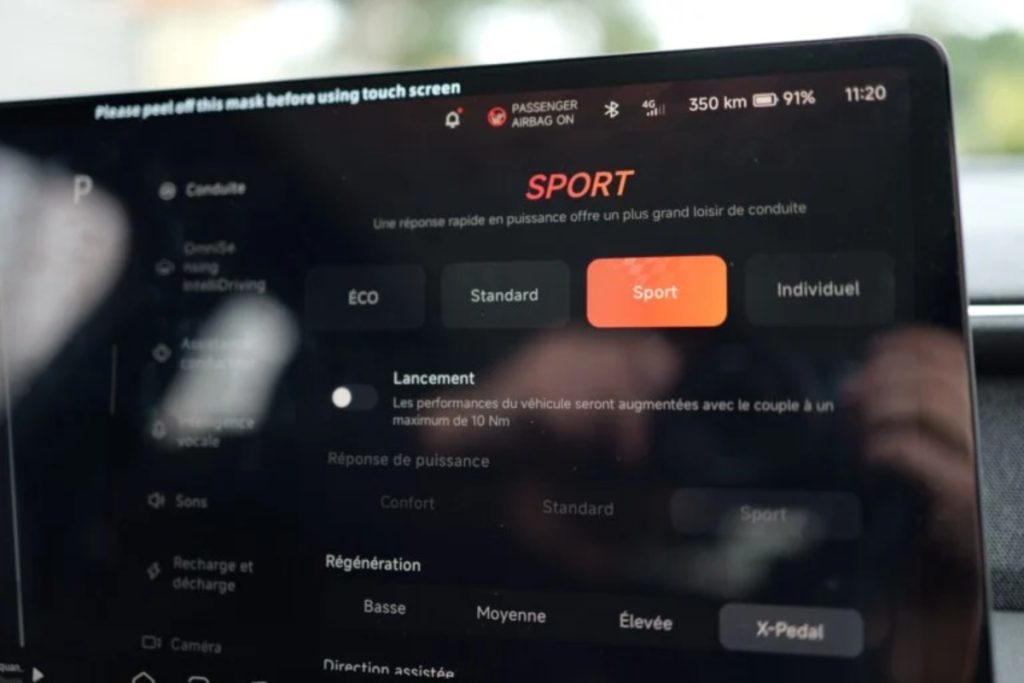 L’écran central de 15 pouces, bien que similaire à celui de Tesla, reste légèrement moins fluide. Toutefois, il dispose d’un avantage certain avec l’ajout d’Apple CarPlay et Android Auto, des fonctionnalités qui font défaut à Tesla et qui sont un réel plus pour la connectivité. La possibilité de télécharger des applications comme Apple TV, YouTube ou TikTok sur le store d’applications intégré est une nouveauté bienvenue, mais il est important de noter que la fluidité générale du système ne rivalise pas encore avec celle de Tesla, bien qu’elle soit déjà très satisfaisante.