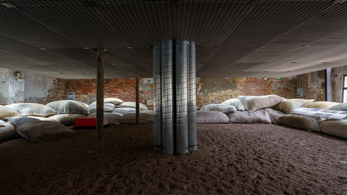 Ménéfiée par Mario Monotti avec entrée thermomécanique d’Alexander Puzrin, l’installation explore l’infrastructure climatique modulaire. Alors qu’un puits géothermique et une cheminée solaire ont été initialement proposés pour créer un microclimat autonome, l’excavation n’était pas possible sur le site de la Biennale – de sorte que la ventilation mécanique a été utilisée à la place pour simuler l’effet de refroidissement prévu de l’architecte.
