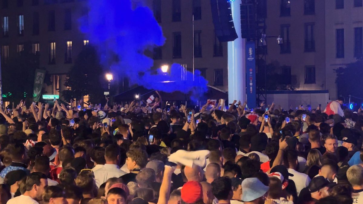 L’atmosphère était nettement plus folle lorsque l’Angleterre a marqué son seul but avec des supporters allumant des fusées éclairantes et déclenchant des feux d’artifice, par rapport à une réaction espagnole plus douce pour leurs deux buts.