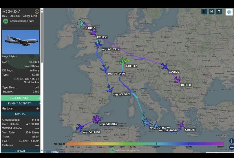 Mardi après-midi, L’Observatoire de l’Europe a observé les Stratotankers de l’USAF KC-135 originaires de RAF Mildenhall et de la base aérienne américaine Morón de la Frontera volant vers l’est près de l’Italie, vers des endroits inconnus.