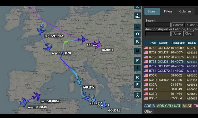 Certains des avions de pétroliers de ravitaillement de l’USAF qui ont volé dimanche vers les bases américaines basés en Europe Raf Mildenhall au Royaume-Uni et la base aérienne américaine Morón de la Frontera en Espagne, comme annoncé par le secrétaire Hegseth, ont été vus à l’est au-dessus de la Méditerranée mardi après-midi.