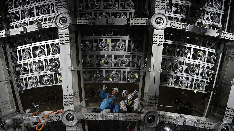Mercredi, les ouvriers ont entamé la dernière étape des travaux de construction. Finalement, ils rempliront le détecteur en forme d’orbe avec un liquide conçu pour émettre de la lumière lorsque les neutrinos le traversent et plongeront le tout dans de l’eau purifiée.