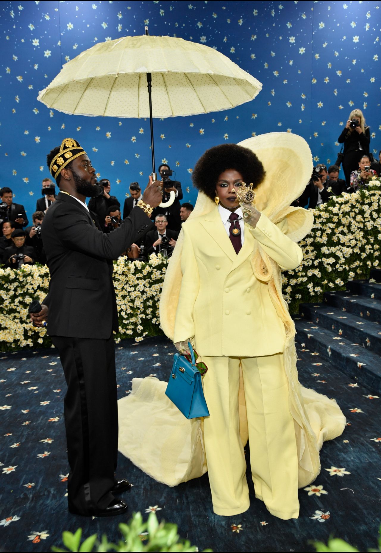 Le noir et blanc était la palette de couleurs dominante de la nuit, avec des touches de rouge pour une touche audacieuse, et même une pincée de bleu ciel – notamment dans le manteau en satin de Wintour et le costume de Chanel Aquamarine de Lupita Nyong’o. Et dans l’un des regards les plus mémorables de la soirée, le rappeur d’Outkast André 3000 a échangé sa fidèle flûte contre un piano, en attachant littéralement un dans son dos. C’est un look qui doit être vu pour être cru.
