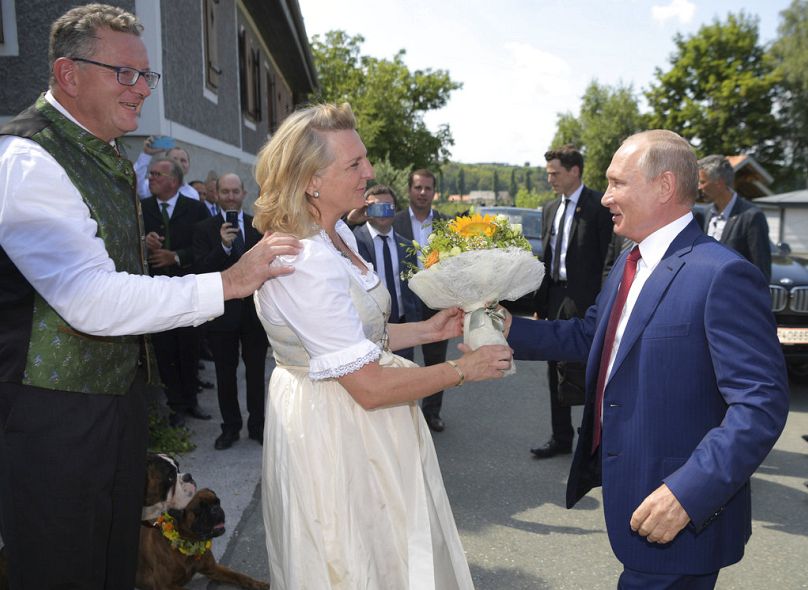 Elle a dansé avec Poutine et a fait une profonde révérence lors du mariage, une décision largement critiquée en raison de sa position au sommet du gouvernement autrichien à l’époque et des critiques de Poutine en Occident en raison de violations des droits de l’homme et d’allégations d’ingérence russe dans les élections américaines.