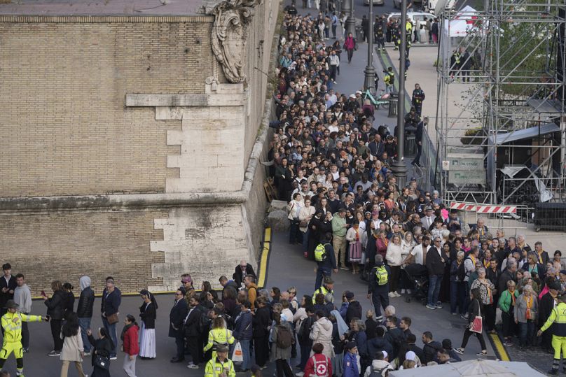 Des dizaines de milliers de fidèles et de touristes ont afflué au Vatican après que le corps du pape François a été transféré mercredi à la basilique Saint-Pierre.