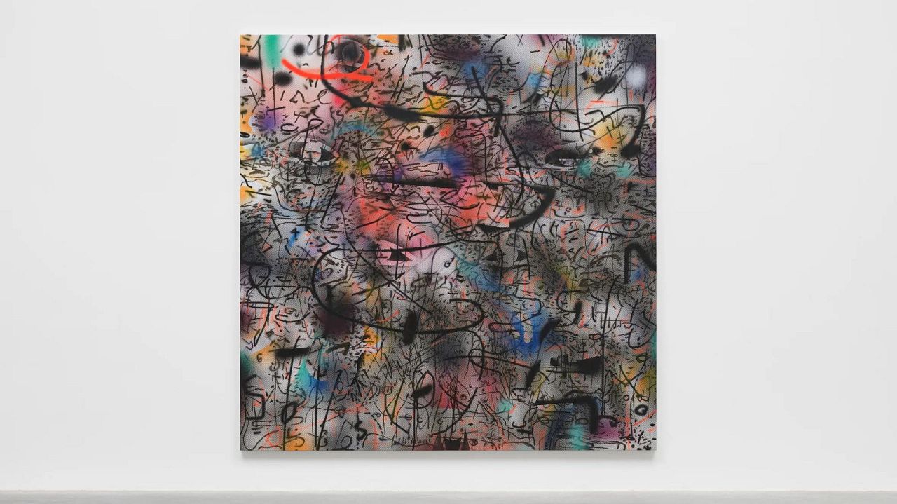 Le design de Mehretu s’inspire de sa peinture monumentale « Everywhen » (2021-2023), visant à donner l’impression que la voiture a traversé l’espace de son œuvre.