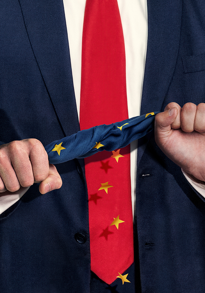 Jamais depuis que la création de l’UE n’a pas exercé une telle influence directe sur les affaires européennes. Et jamais les dirigeants des 27 pays de l’UE ne sont pas prêts – désespérés même – à tenir un président américain en tant que figure d’autorité pour être loué, cajolé, faisant pression, courtisé, mais jamais ouvertement contredit.