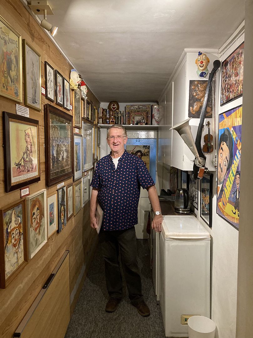 Assis dans ce qui ressemble à un croisement entre une loge chaotique et une boutique de charité spécialisée dans le cirque du bric-à-brac, nous discutons pendant plus de deux heures de sa vie colorée.