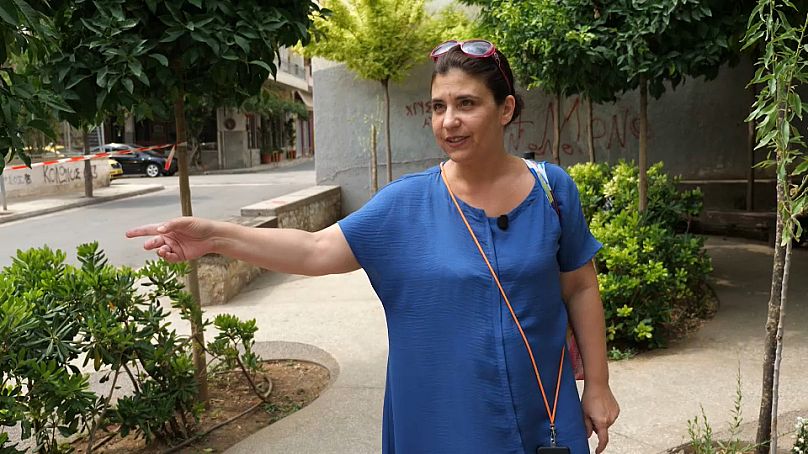 Elissavet nous emmène dans l’un des dix parcs dits de poche que la ville a créés sur un terrain vague. C’est maintenant un endroit rafraîchissant dans l’un des quartiers les plus chauds de la ville.