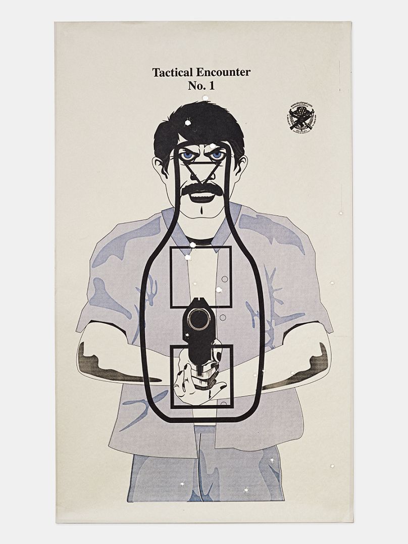 L’un de ses derniers projets, « LA GUN CLUB », actuellement exposé à la Palo Gallery de New York, explore la culture américaine des armes à feu à travers une collection d’affiches de cibles uniques « shot up ».
