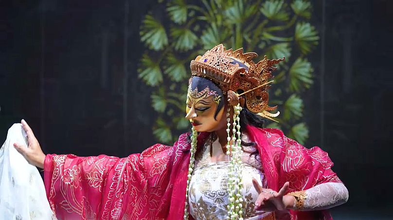 Avec des coiffes en or, des masques de théâtre traditionnels et des « batik » colorés et fluides, les costumes pour Hayati ont été spécialement conçus par l’un des créateurs de mode indonésiens acclamés, Era Soekamto.