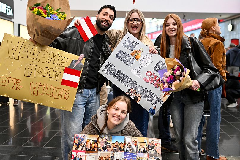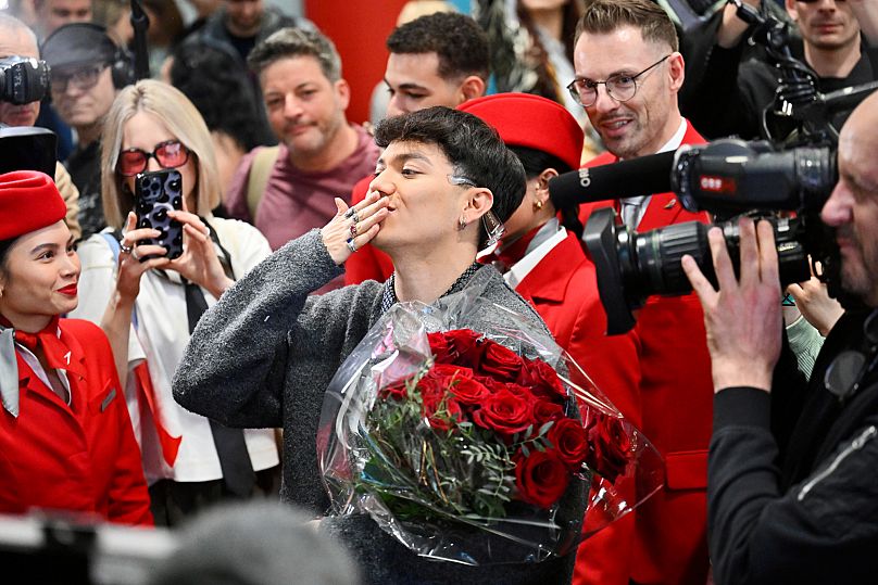 Les fans autrichiens ont accueilli avec enthousiasme JJ à la maison à l’aéroport de Vienne après que l’artiste ait remporté le 69e concours Eurovision de la chanson avec la chanson de Popera « Wasted Love ».