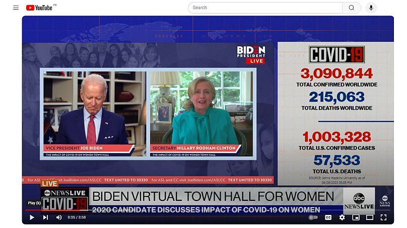 Les images de Biden, en revanche, sont en réalité tirées d’une vidéo de 2020 dans laquelle il est soutenu par Hillary Clinton.