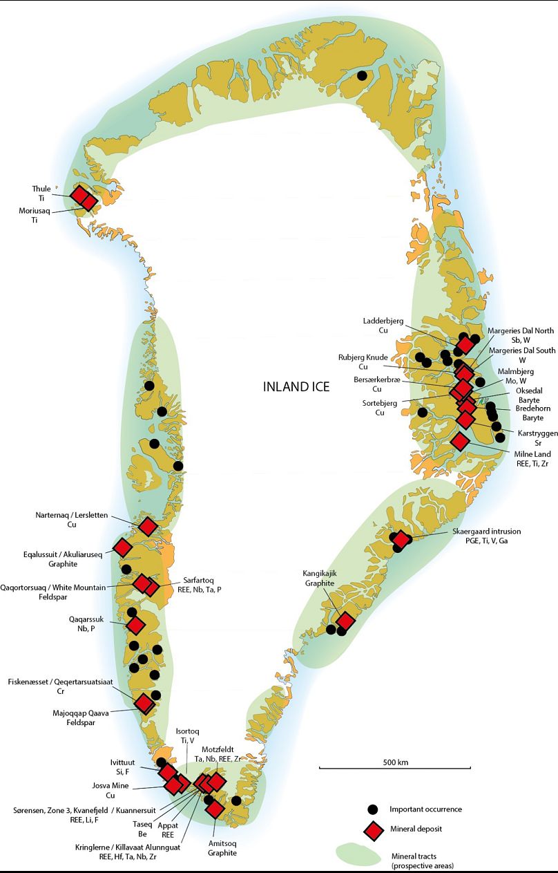 L’enquête géologique du Danemark et du Groenland (GEUS) a été plutôt plus effusive, annonçant en 2023 qu’elle avait identifié «un grand potentiel de matières premières critiques au Groenland» car elle a publié un rapport détaillé.