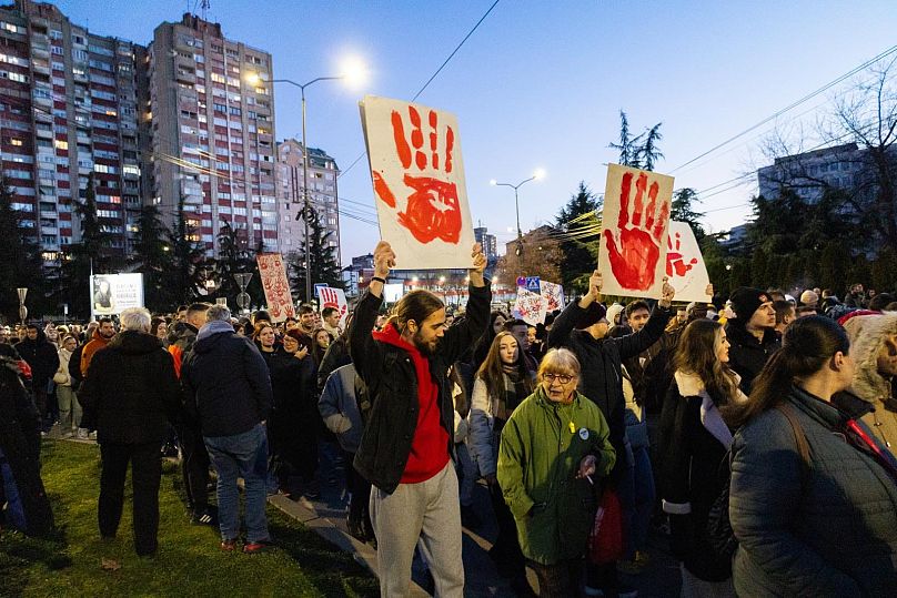 Lors des manifestations à Novi Sad les week-ends suivants, les routes ont été bloquées et les manifestants ont peint des empreintes de mains rouges sur les bâtiments de la ville, symbolisant le sang des victimes sur les mains du gouvernement.