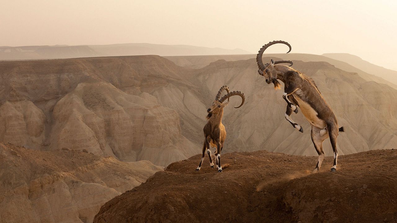 On dirait le décor de la prochaine Mission Impossible, mais pour les bouquetins de Nubie, les terrains rocheux de haute altitude sont à la maison. L’espèce de bouquetin vulnérable est connue pour de nombreuses choses – ses grandes cornes semi-circulaires, sa capacité à escalader facilement les montagnes et les combats territoriaux auxquels les mâles se livrent pendant la saison du rut. Les démonstrations de domination commencent par montrer leurs impressionnantes cornes. Si cela ne suffit pas, il est temps d’intensifier en poussant et bousculant l’adversaire et en verrouillant littéralement les cornes avec lui. Les bouquetins se tiennent également sur leurs pattes arrière lorsqu’ils se préparent à frapper.