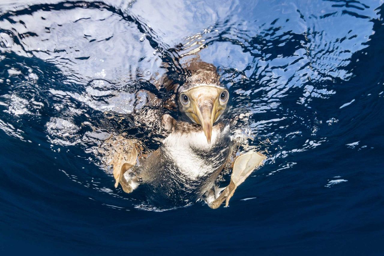 Les fous bruns passent une partie importante de leur vie en pleine mer. Leur nature maladroite sur terre leur a valu leur homonyme, dérivé du mot espagnol bobo, qui signifie stupide ou idiot. Ce sont d’excellents fourrageurs de la mer et plongent pour se nourrir de tout, des anchois et des sardines aux calmars et aux crevettes. Le photographe a regardé cet individu plonger sa tête sous l’eau à de courts intervalles et s’est mis en position pour capturer un portrait en gros plan de l’oiseau du point de vue de sa proie fatale.