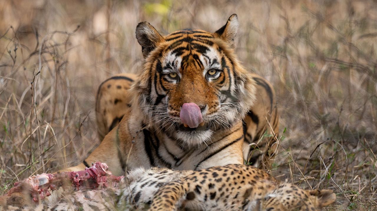 Cela prend un moment avant de partir, ‘Woah!’. Bien que les tigres et les léopards partagent la même base de proies, ils ont tendance à ne pas se confronter et restent généralement éloignés les uns des autres. Mais lorsqu’ils sont menacés par la concurrence, les tigres peuvent éliminer d’autres prédateurs sur leur territoire, comme les léopards.