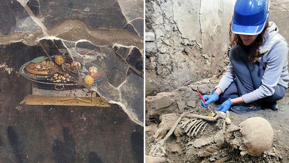 « Cette maison ici est probablement quelque chose entre les deux du côté supérieur (classe) parce que nous avons des peintures, nous avons cette nature morte (fresque) ici, il y a d’autres pièces avec des fresques, mais il y a aussi une boulangerie avec un four à l’intérieur de la maison , ce qui est inhabituel pour les maisons d’élite les plus aisées », explique Gabriel Zuchtriegel, directeur du site archéologique de Pompéi.