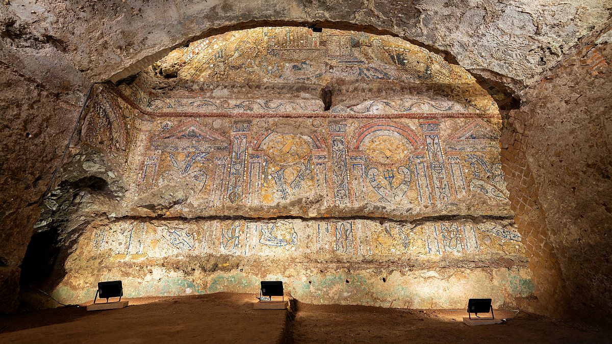 Mais ce qui « rend la découverte exceptionnelle, c’est (…) un mur extraordinaire recouvert d’une mosaïque dite ‘rustique’ sans précédent par la chronologie et la complexité des scènes représentées », ajoute-t-on.