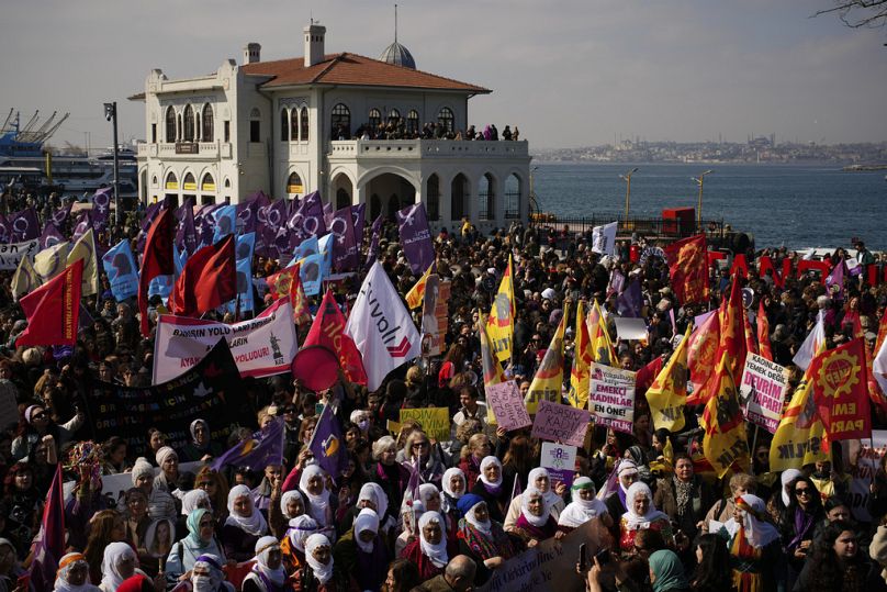 Le gouvernement turc a déclaré en 2025 «l’année de la famille», une décision que de nombreux manifestants ont critiqué, la voyant comme une tentative de confiner davantage les femmes aux rôles traditionnels du mariage et de la maternité. La décision du gouvernement de se retirer de la convention d’Istanbul en 2021, qui a été conçue pour protéger les femmes contre la violence domestique, a également été une source de colère parmi les militants. La plate-forme We Will Stop Femicides a rapporté que 394 femmes avaient été tuées par des hommes en Turquie en 2024.