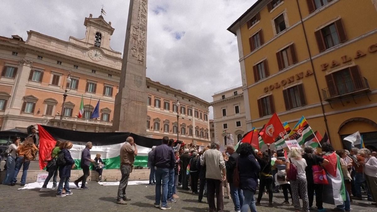 Des manifestants se sont rassemblés dans la capitale, Rome, pour exiger la fin de la guerre à Gaza et la souffrance du peuple palestinien.