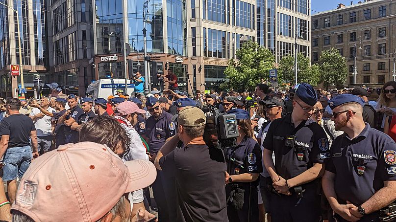 Alors que Pride a été officiellement interdite, la police a permis à une marche d’extrême droite d’aller de l’avant. Le Mouvement des jeunes des 64 comtés d’extrême droite a organisé un événement sur la même place à Budapest où les participants à la fierté se sont réunis plus tard.