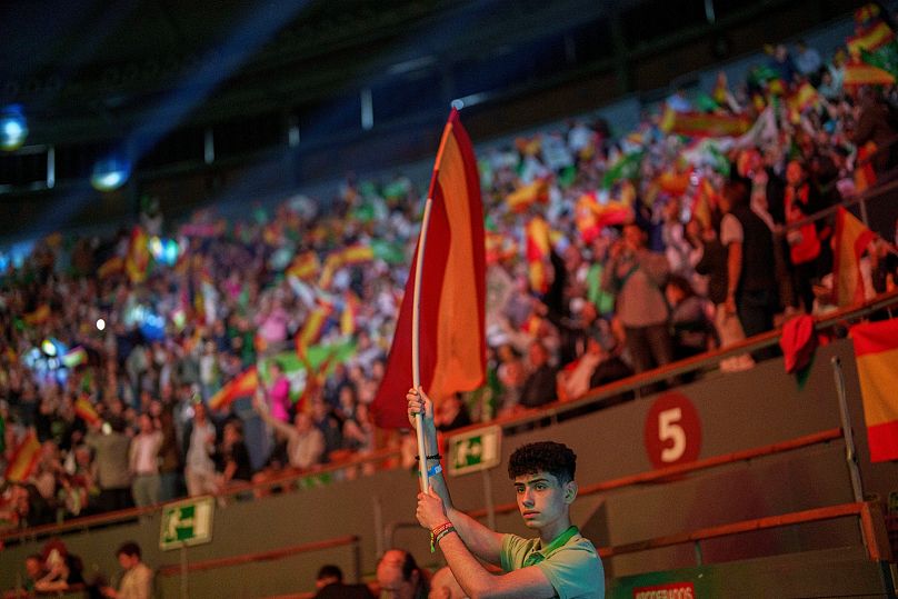 Pendant ce temps, près de 11 000 supporters – selon Vox – ont rempli une ancienne arène en brandissant des drapeaux espagnols, ainsi que certains venus d’Argentine, de Cuba, du Venezuela et d’Israël.