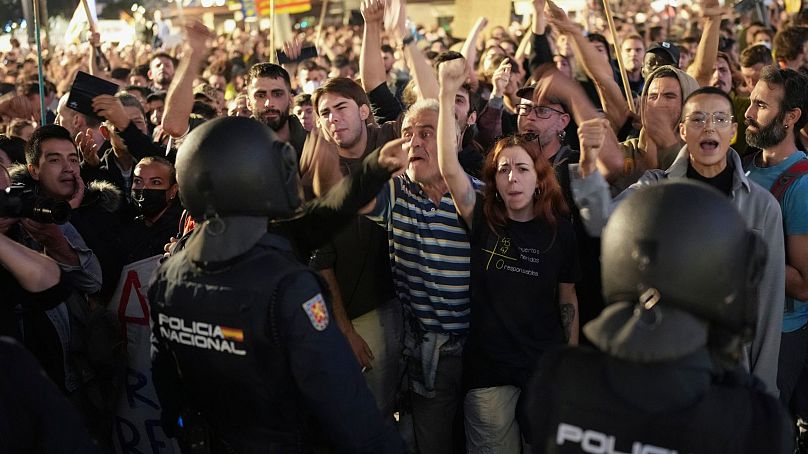 Certains manifestants ont affronté la police anti-émeute devant la mairie de Valence, où ils ont commencé leur marche vers le siège du gouvernement régional.