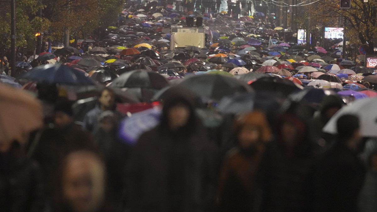 Des milliers de manifestants antigouvernementaux ont défilé lundi dans la capitale serbe, exigeant la démission des hauts responsables après l’effondrement mortel d’un toit en béton dans une gare ferroviaire qui a tué 14 personnes au début du mois.