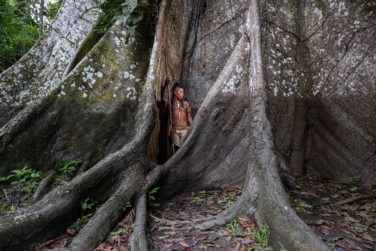 Un homme de Ticuna est éclipsé par un arbre Ceiba âgé de 500 ans dans la forêt amazonienne péruvienne sur cette photo du photographe colombien et ingénieur Mateo Borrero.
