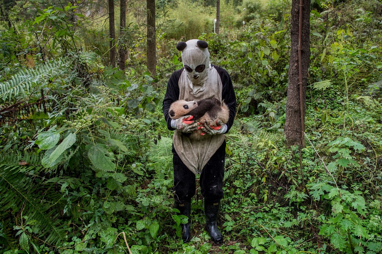 Enfoncer un costume de panda au Wolong’s Hetaoping Center dans la province du Sichuan n’est qu’une des nombreuses choses qu’Ami Vitale a faites pour incarner sa croyance en «vivre l’histoire».
