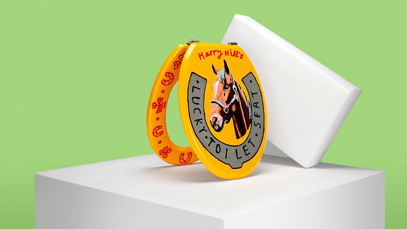Le design de Boy George comporte les mots « piss and love », tandis que la création de Hill comprend une représentation d’un cheval à l’intérieur d’un fer à cheval sur lequel est écrit « lucky toilet seat ».