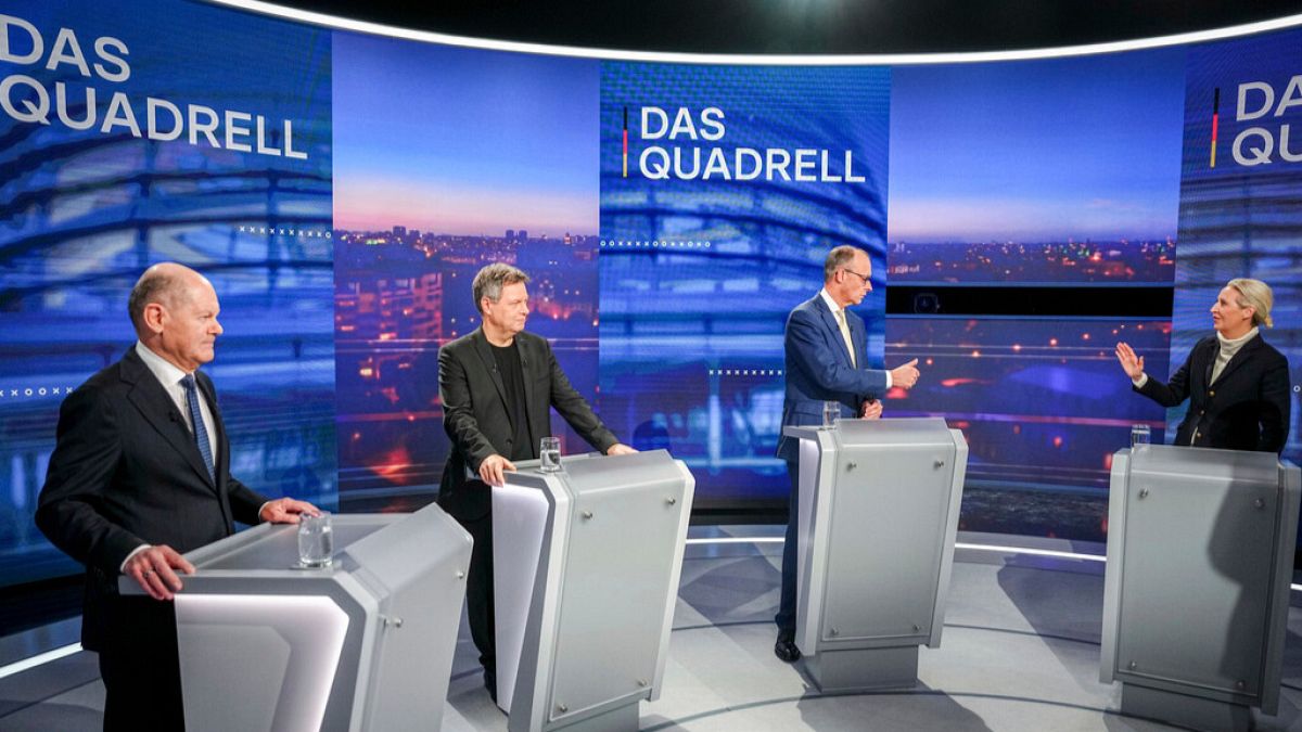 Les quatre principaux candidats chanceliers: Friedrich Merz, Olaf Scholz, Robert Habeck et Alice Weidel sont montés sur scène pour un débat ardent et télévisé.