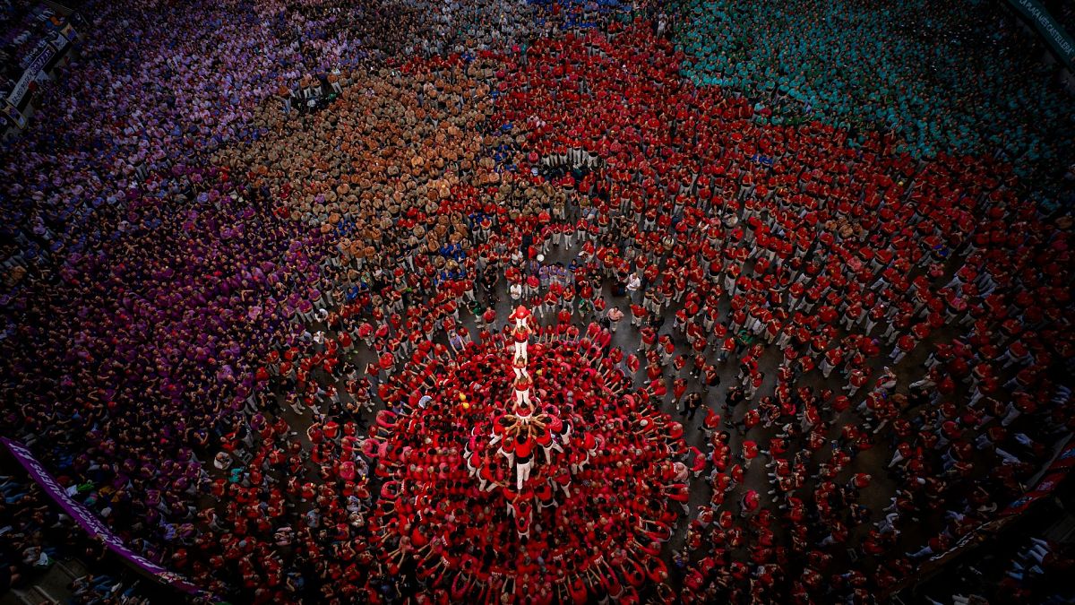 Des photos à couper le souffle capturent la foule de gens qui regardent les centaines de courageux participants s’élever de plus en plus haut dans leurs « castell ».