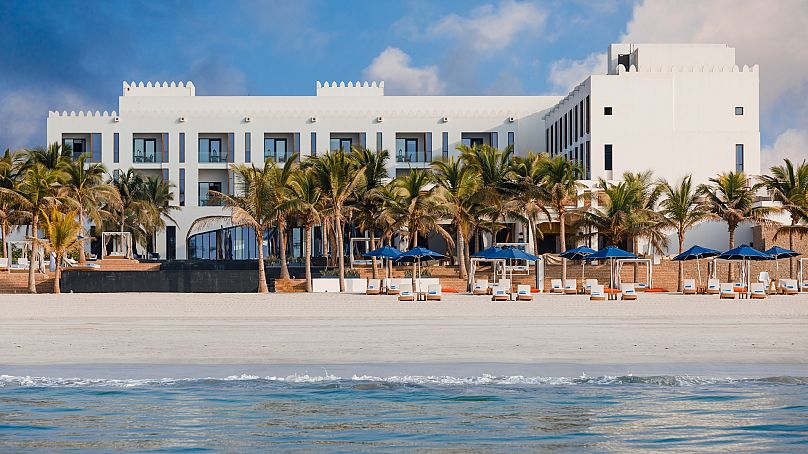 Lorsque mon taxi s’arrête sous les élégantes arches arabes de mon hôtel, Al Baleed Resort Salalah by Anantara, j’aperçois un trio d’arbres à encens ornementaux dans des pots dorés étincelants. L’établissement se trouve en bord de mer, à proximité du musée du pays de l’encens.
