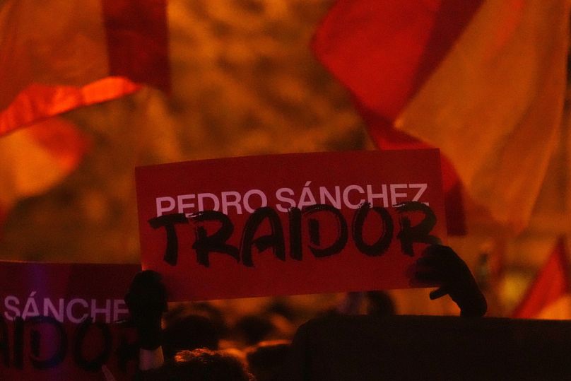 Les rues de plusieurs villes espagnoles ont été remplies de personnes opposées aux négociations entre le gouvernement espagnol en exercice et les partis séparatistes catalans sur une éventuelle amnistie pour les milliers de personnes impliquées dans le mouvement indépendantiste catalan.