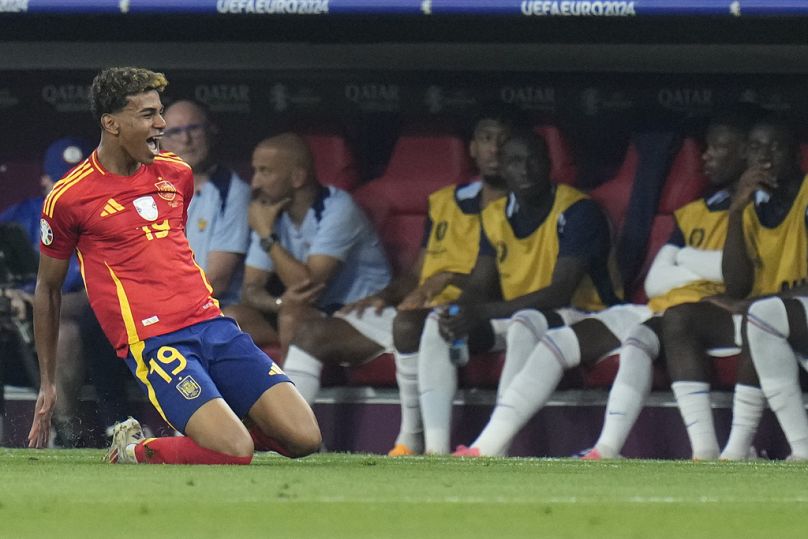 L'Espagnol Lamine Yamal s'incline devant le banc français après avoir égalisé face aux Bleus en demi-finale de l'Euro 2024 à Munich