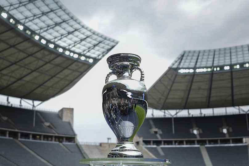 Le trophée de l'Euro 2024 de l'UEFA exposé au Stade olympique de Berlin