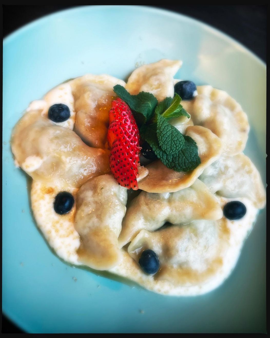 Et de retour à Stratford, dans un de ces établissements, des boulettes de cerises sucrées avec de la crème sure et de la cassonade apportent l’éducation à un crescendo.