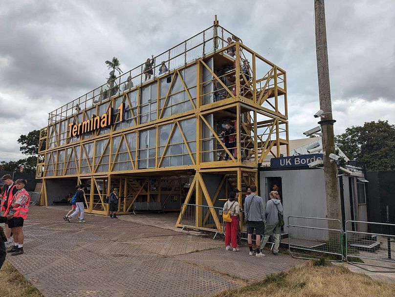 Le Terminal 1 est une nouvelle installation artistique de cette année, destinée à reproduire l’expérience des réfugiés pour une foule majoritairement britannique. C’est une pièce saisissante, construite sur quatre conteneurs d’expédition empilés.