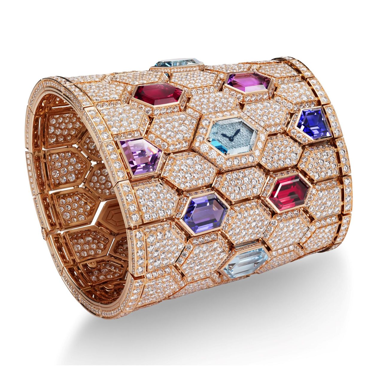 Sa nomination en joaillerie est la Serpenti Cleopatra, une manchette en or rose, ornée de pierres fines colorées et d’un cadran de montre subtilement placé au centre qui rend hommage à l’héritage de la marque en matière de création de « montres secrètes » (où une montre est déguisée en un bijou). ). Il s’inspire également de la visite historique de Cléopâtre à Rome (la maison de Bulgari) et des bracelets serpent qu’elle portait.