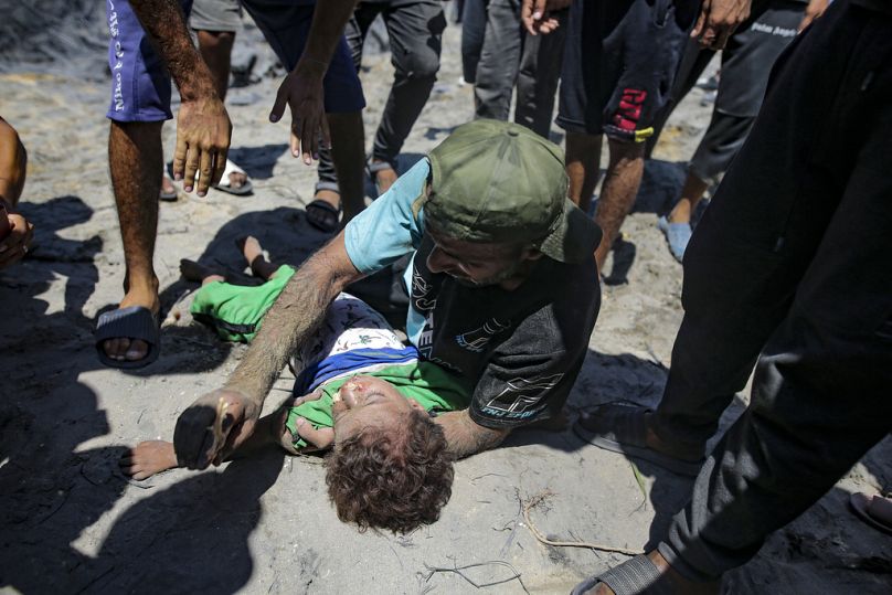 « J’ai entendu le premier coup de feu et mon fils est arrivé en criant : ‘Papa, papa’ et s’est mis à l’abri avec moi », a déclaré Mahmoud Abu Yaseen, qui serrait ses enfants dans ses bras avant de se réveiller à l’hôpital et de découvrir que son fils était mort. La famille avait déjà été déplacée cinq fois depuis le début de la guerre. « Où allons-nous ? », a-t-il demandé.