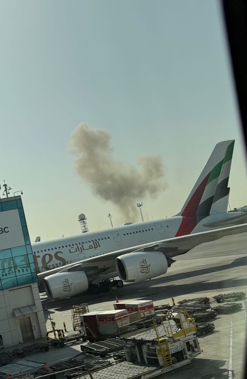 Dubai Media office says falling shrapnel after air defense interception is what was seen recently over the city. Additional aircraft have now moved to a closer hold to the airport, though arrivals have not yet resumed. https://t.co/Xv8JfcamE6 https://t.co/B3xIaV3MpS pic.twitter.com/qylSriYrbS