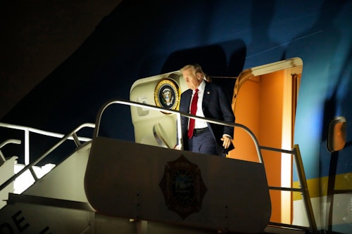 US President Donald Trump has arrived in Miami where he will spend the night after flying in from Washington.